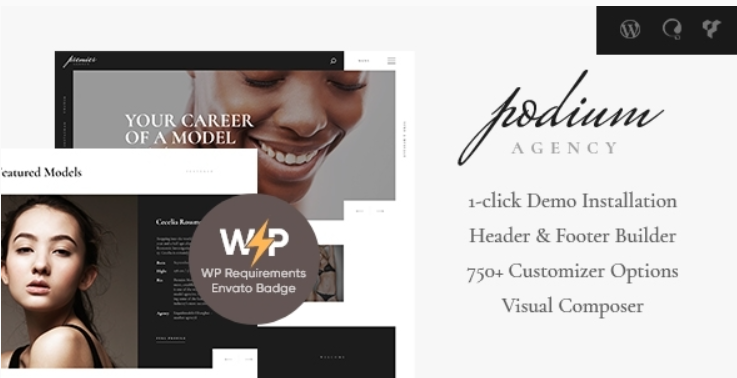 With all the elements required for a fantastic online website for a fashion model agency, Podium is an exceptionally versatile, amazing, and stunning theme on the list of the 10 Best Model Agency WordPress Themes 2025. Podium is an incredible foundation for a modeling agency, portfolio of models, modeling school, top model catalog, fashion magazine, and boutique. The most recent valid HTML5 and CSS3 are the foundation of this business theme. This indicates that your website is using the newest technology, semantic coding, and SEO strategies to rank higher in search results. The Podium theme is optimized for search engines since semantic codes were incorporated into the theme’s design from the beginning.